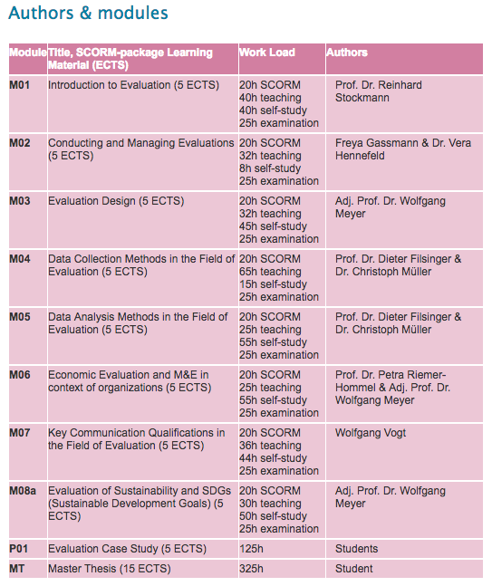 Una mirada rápida a los módulos y sus profesores puede brindar una mejor idea de la propuesta de este master. La fecha final de inscripción es el próximo 15 de Febrero de 2018. Mayor información puede ser consultada en www.mable-evaluation.com.