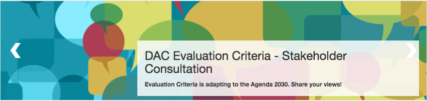 Este movimiento ha precedido (y quizás impulsado) una consulta oficial con las partes interesadas de parte del Comité de Ayuda al Desarrollo, interesado en explorar cómo dichos criterios de evaluación pueden adaptarse al nuevo escenario del desarrollo y a la Agenda 2030. La consulta realiza básicamente tres preguntas: