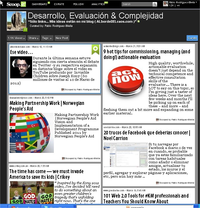 Pues bien, hasta aquí una parte del Editorial de esta revista, en la cual tuvimos junto a Esteban Tapella la oportunidad de participar con nuestro artículo Evaluación y Aprendizaje desde la práctica: la sistematización de experiencias. En dicho trabajo, «además de destacar brevemente las raíces de la sistematización de experiencias en América Latina, así como sus similitudes con ciertas tendencias en el campo de la gestión del conocimiento (KM) y la evaluación, el artículo presenta conceptos básicos y consideraciones metodológicas sobre la sistematización de experiencias de desarrollo. Reconociendo la existencia de diversos enfoques metodológicos de la misma, el artículo presenta el método de base que se ha aplicado en diferentes proyectos, basado tanto en la experiencia de los autores como en el trabajo de otros practicantes.»